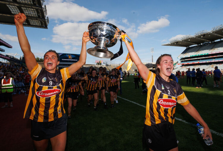 REPRO FREE***PRESS RELEASE NO REPRODUCTION FEE*** EDITORIAL USE ONLY Glen-Dimplex All-Ireland Senior Camogie Championship Final, Croke Park, Dublin 7/8/2022 Cork vs Kilkenny Kilkenny’s Katie Power and Grace Walsh celebrate Mandatory Credit ©INPHO/James Crombie